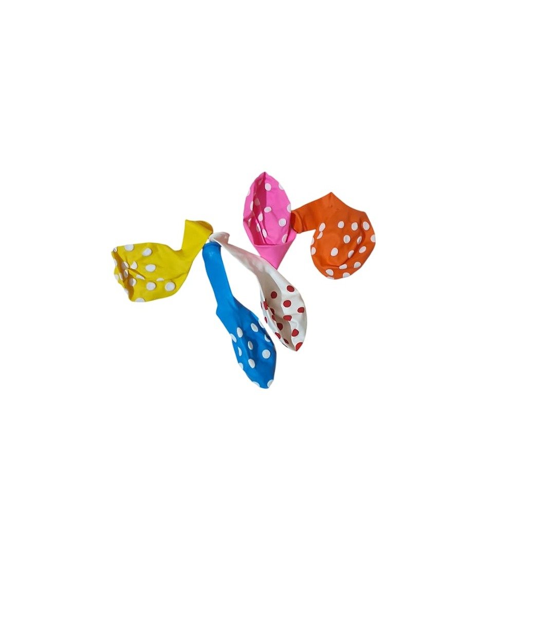 Add a touch of fun and vibrancy to your celebrations with these Colorful Polka Dot Balloons. This set of 5 balloons comes in an assortment of bright colors, including yellow, blue, pink, orange, and white, all featuring playful polka dot patterns.